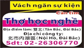 uần nghỉ 2 hoặc 3 buổiĐịa điểm làm: 雙北(Tân Bắc, Đài Bắc)