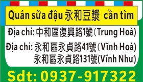Nhân viên làm việc ca đêm Lương từ 39000 Nhân viên nấu sữa đậu Đãi ngộ tốt Địa chỉ: 中和區復興路1號( Trung Hoà) Nhân viên làm việc ca tối Lương từ 38000 Địa chỉ: 永和區永貞路41號( Vĩnh Hoà) 永如區永貞路131號 ( Vĩnh Như)