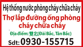 Thợ lắp đường ống phòng cháy chữa cháy Thợ học nghề lương từ 1800/ ngày Thợ phụ lương từ 2200/ ngày Thợ chính lương từ 2500/ ngày Dựa theo năng lực, thái độ điều chỉnh lương Thời gian: 08:00-17:00, nghỉ trưa 1 tiếng Có bảo hiểm đoàn thể, thưởng ba lễ lớn, quà sinh nhật, có bữa trưa và nước Địa điểm: 雙北( Đài Bắc, Tân Bắc)