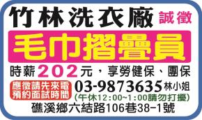 • 工作職缺: 毛巾摺疊員