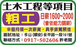 • 半個月領一次薪資(會依能力調薪),具手排駕照佳