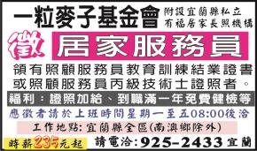 • 工作職缺: 居家服務員