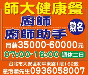 師大健康餐 廚師助手 數名