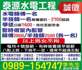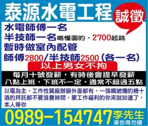 • 工作職缺: 室內配管半技師