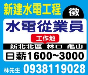 • 工作職缺: 水電從業員