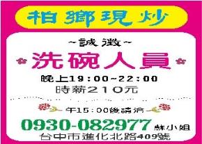 • 工作職缺: 洗碗人員