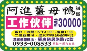 • 工作時間:下午4:00~凌晨1:00,二度就業可,男女不拘(外配亦可),意者備履歷洽