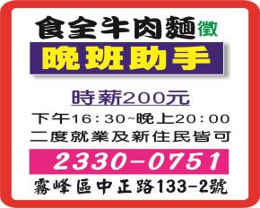 • 工作職缺: *晚班助手