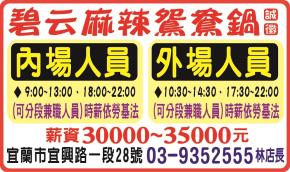 • 10:30~14:30、17:30~22:00(可分段兼職人員)時薪依勞基法