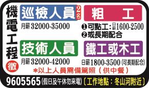 • (1)可點工:日薪1600-2500 (2)或長期配合,以上人員需備駕照(供中餐),假日及午休勿來電
