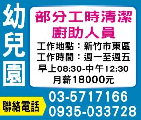 幼兒園部分工時/半天/廚助人員