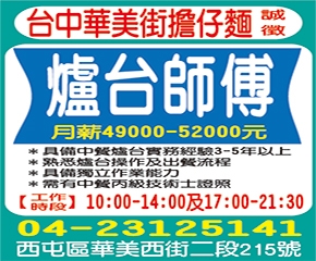 • 工作職缺: 爐台師傅