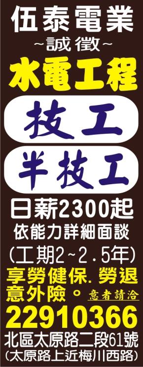 • 工作職缺: 水電【半技工】