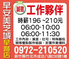 • 工作地點: 新竹縣竹北市成功八路230號1樓
