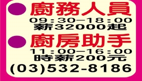 • 工作職缺: 廚務人員,廚房助手